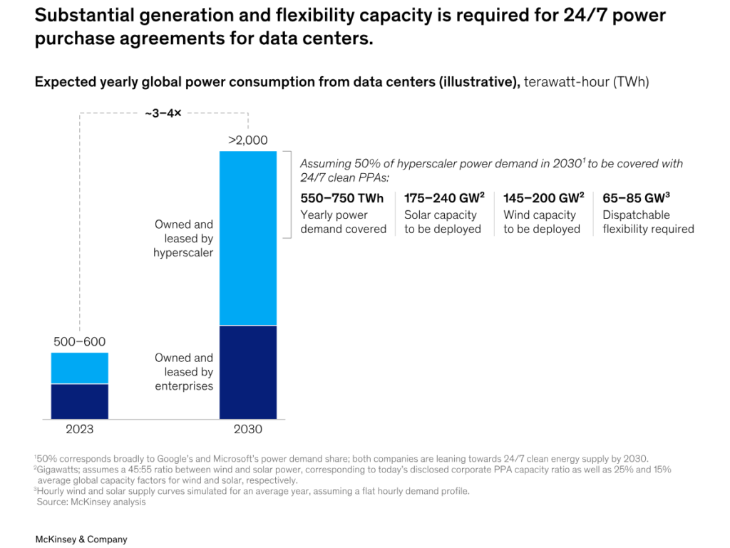Demand for round-the-clock (RTC) power is rising. Hyperscalers and manufacturers want time-matched clean power instead of annual offsets. Technology firms are committing to 24/7 clean power procurement, pushing developers toward hybrid solar-wind-storage projects.