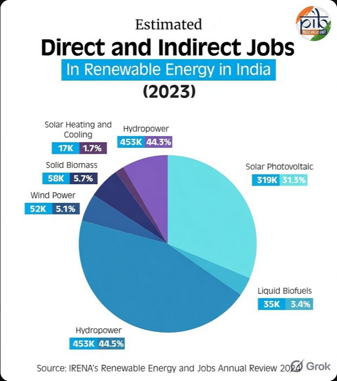 Solar and wind remain the largest employers. Yet energy storage and green hydrogen are gaining ground. A new hydrogen project in Haryana is expected to create over 40,000 direct jobs and 1.2 lakh indirect jobs.