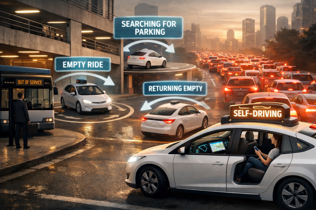 The findings echo broader economic concerns. When travel becomes easier and more convenient, demand rises. This effect is similar to the “induced demand” seen in ride-hailing services. In fact, studies show that ride-hailing vehicles already account for a significant share of urban traffic, with large portions of trips occurring without passengers.