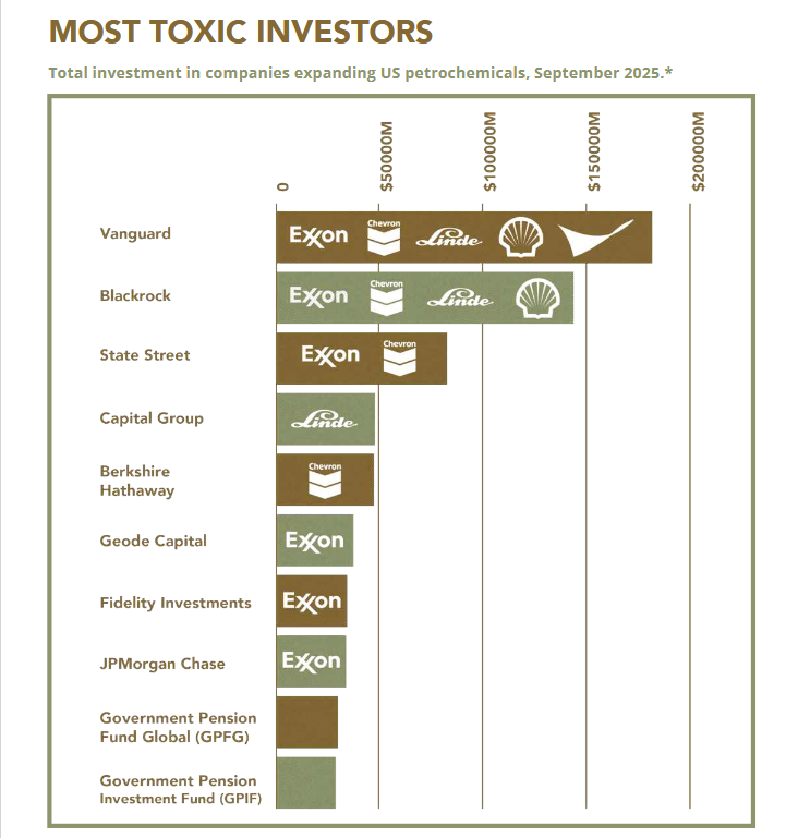 The scale of exposure is even larger. Institutional investors held more than $1.6 trillion in companies driving petrochemical expansion by 2025. This suggests systemic risk. It also signals long-term lock-in to fossil fuel-based industries.