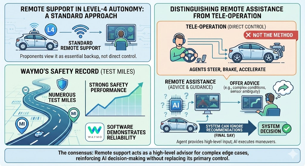 Critics of robotaxis say the presence of remote staff shows that full autonomy is still years away. They argue that if humans are needed for edge cases, the “driverless” label is misleading. Proponents counter that remote support is standard for level-4 autonomy. They point out that in numerous test miles Waymo’s software shows strong safety performance.